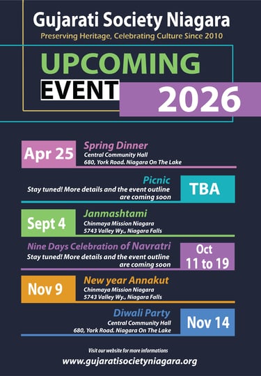Gujarati Society Niagara is a cultural and educational non-profit organization based in Niagara Falls, Ontario. It is one of the largest cultural organizations in the Sothern Ontario , with thousands of Gujarati-speaking members and supporters. The framework of the Samaj was set in 2010; it has since grown to one of the most active Indian organizations in the Canada, holding many exciting cultural and recreational events that bring uncountable Gujarati community together.